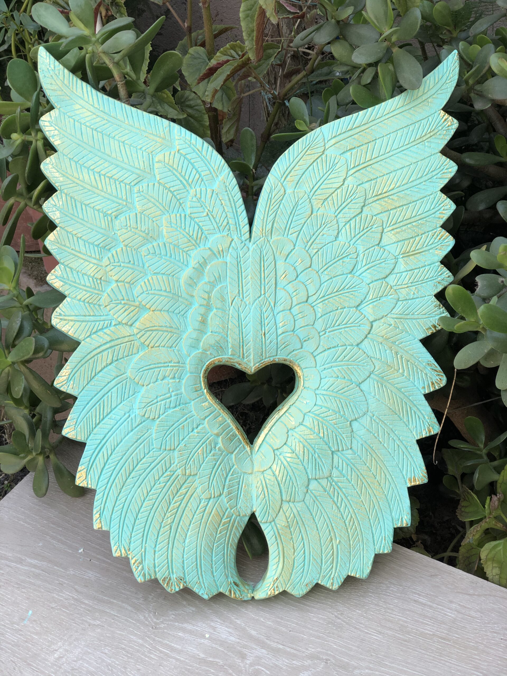 Alas hermosas pintadas a mano miden 46 de alto y 36 de ancho.